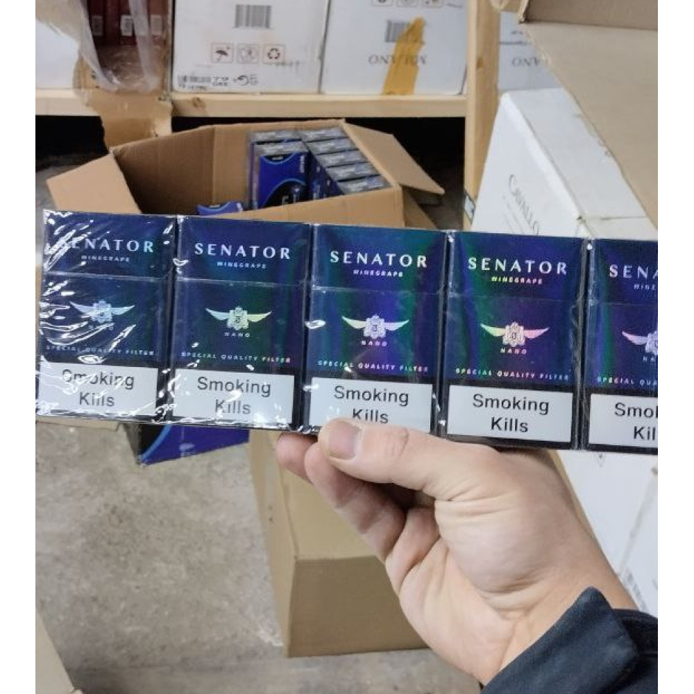 Сигареты Senator Grape (виноград) Nano в Одинцово купить дешево в нашем магазине с доставкой. Эти сигареты можно заказать всего от 1 блока, но при соблюдении условий заказа не менее 5-ти блоков в любом ассортименте. Сигареты Senator Nano Grape (виноград) были изготовлены фабрикой Балтика в соответсвии всех технологических процессов и ГОСТ-а предприятий.